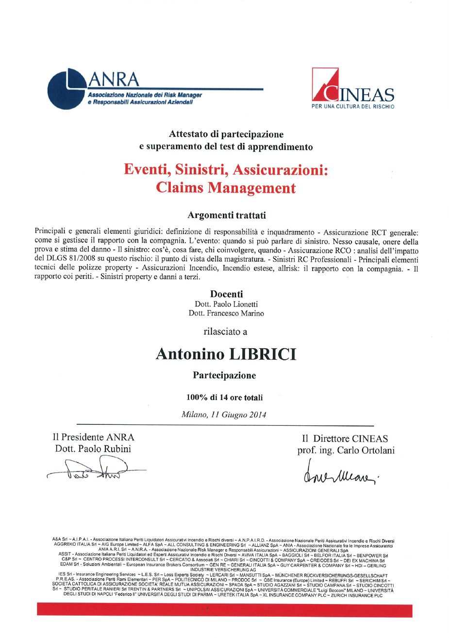 Antonino Librici & Partners: un gruppo di esperti dedicato alla gestione del rischio aziendale